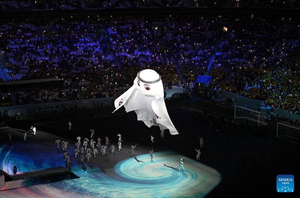 Dancers perform during the opening ceremony before the Group A match between Qatar and Ecuador at the 2022 FIFA World Cup at Al Bayt Stadium in Al Khor, Qatar, on Nov. 20, 2022. (Xinhua/Han Yan)