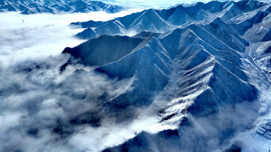 The rolling Qilian Mountains in northwest China’s Gansu Province are covered in snow, presenting a stunning spectacle. (Photo/Li Weitai)