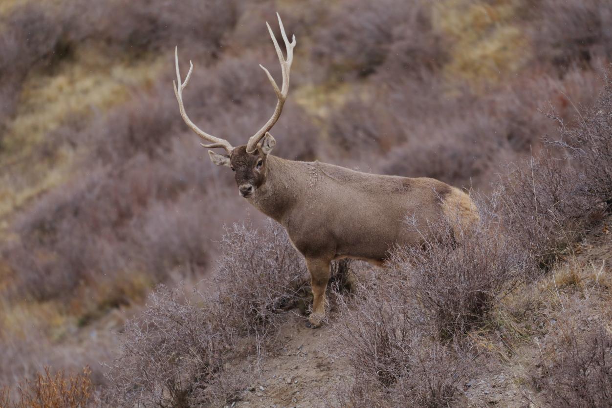 This photo shows a white-lipped deer at the Sanjiangyuan National Park in northwest China’s Qinghai Province. (Photo/Jiangwen Jiangcuo)