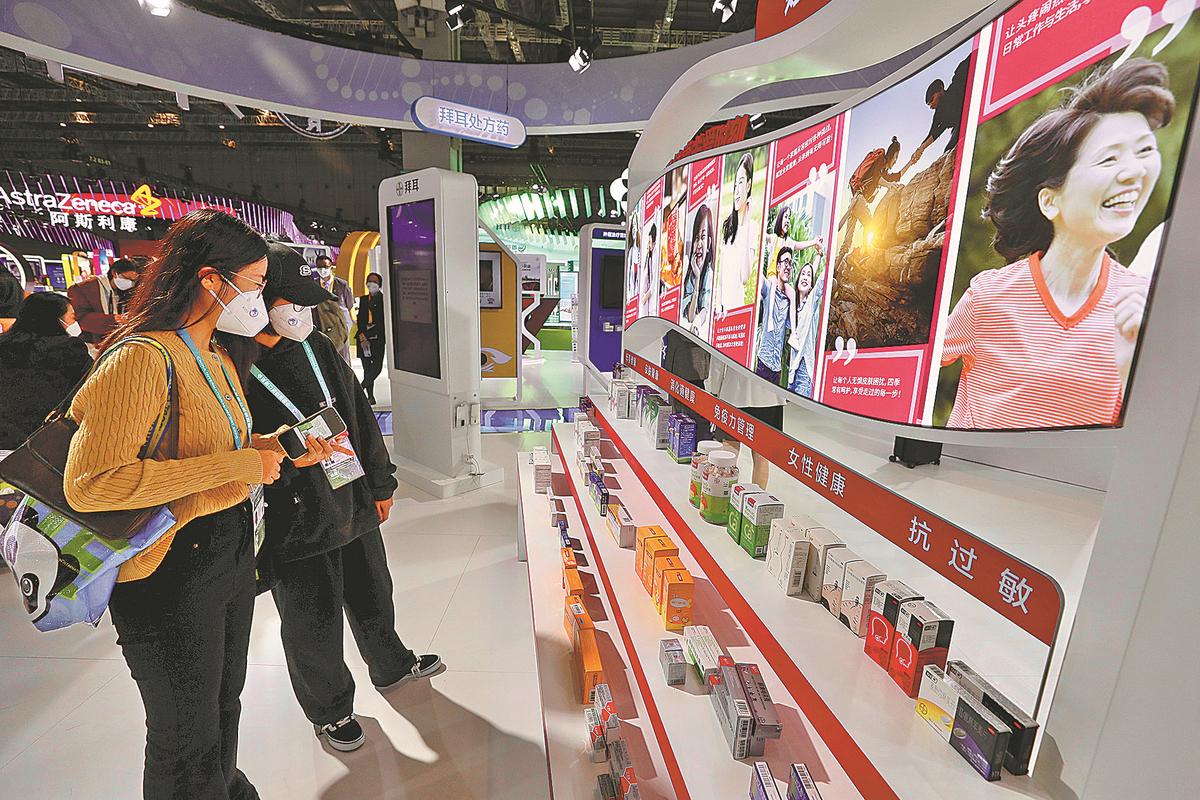 Visitors check out Bayer products during the fifth CIIE in Shanghai on Nov 6. [ZHU XINGXIN/CHINA DAILY]