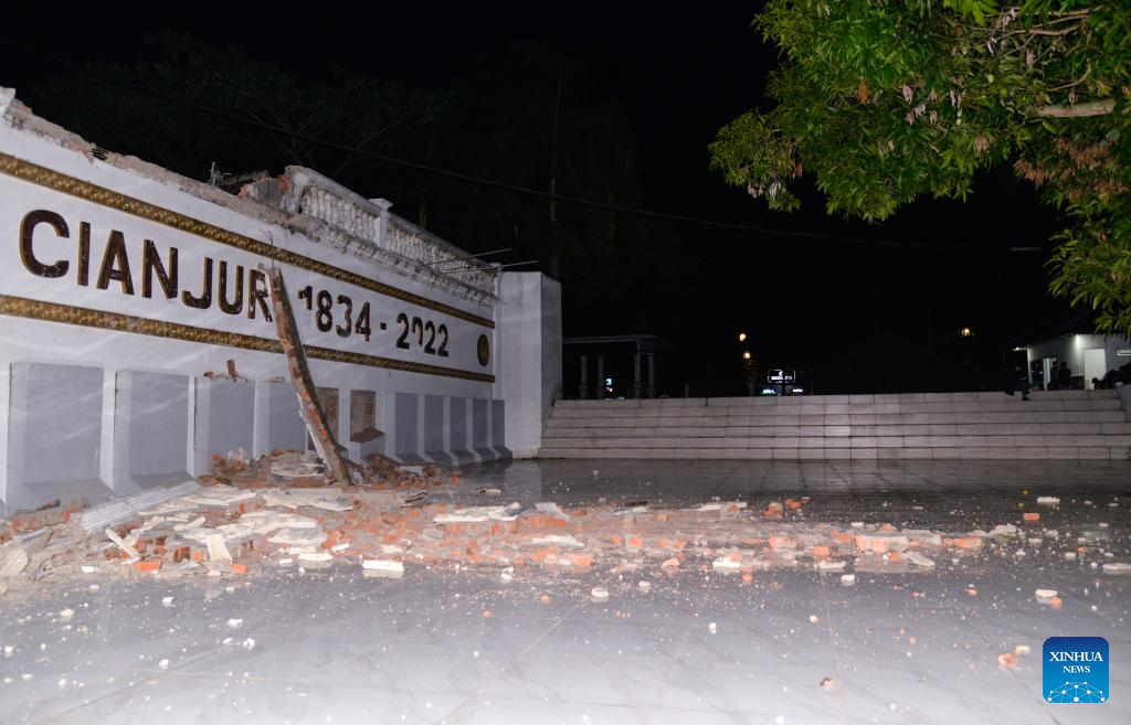 Photo taken on Nov. 21, 2022 shows a site damaged in the earthquake in Cianjur, West Java, Indonesia. A total of 162 people were killed after a 5.6-magnitude earthquake hit Indonesia's West Java province on Monday, officials said. (Xinhua/Xu Qin)