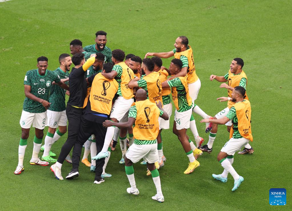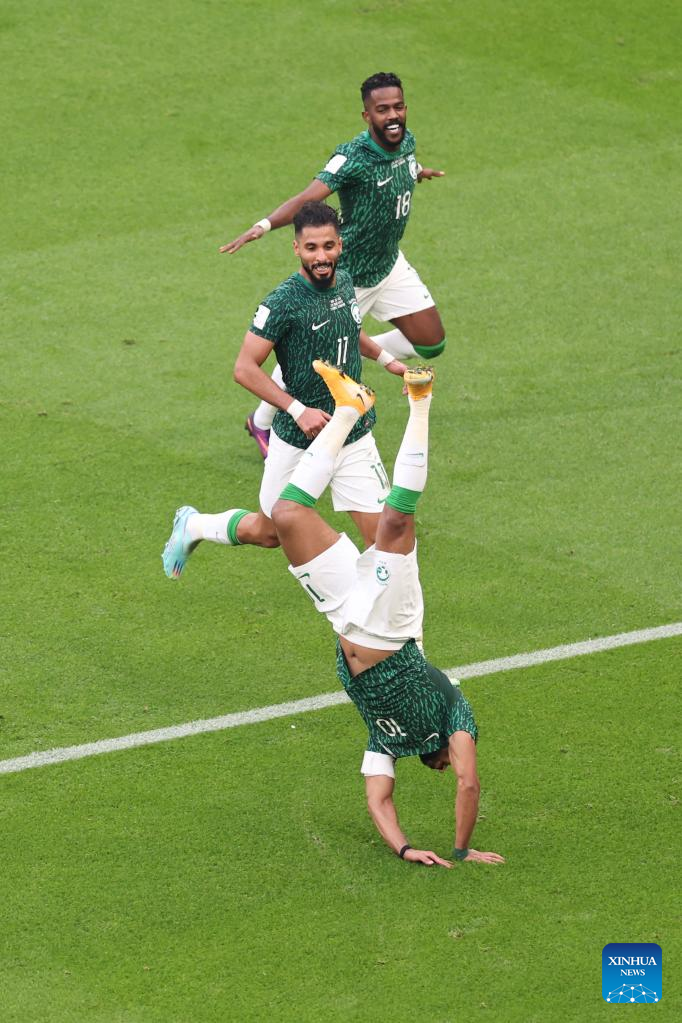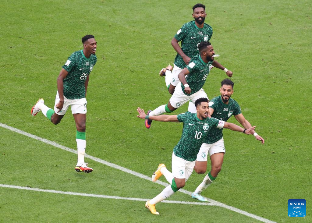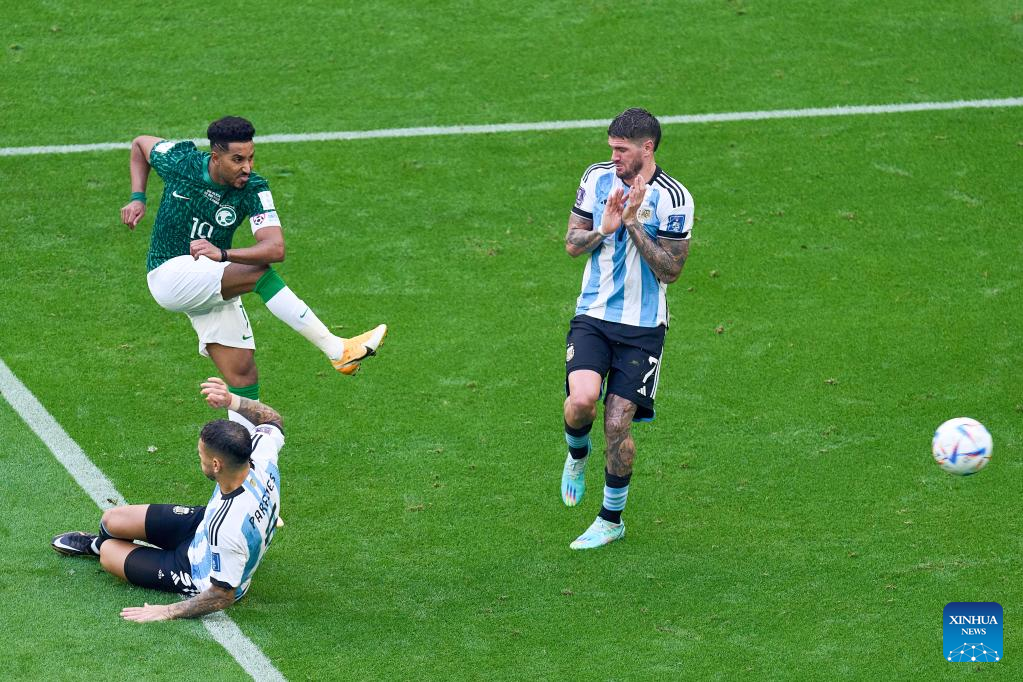 LUSAIL, Nov. 22 (Xinhua) -- Saleh Alshehri and Salem Aldawsari scored second-half goals as Saudi Arabia caused a major upset by beating Argentina 2-1 in their FIFA World Cup Group C match here on Tuesday.