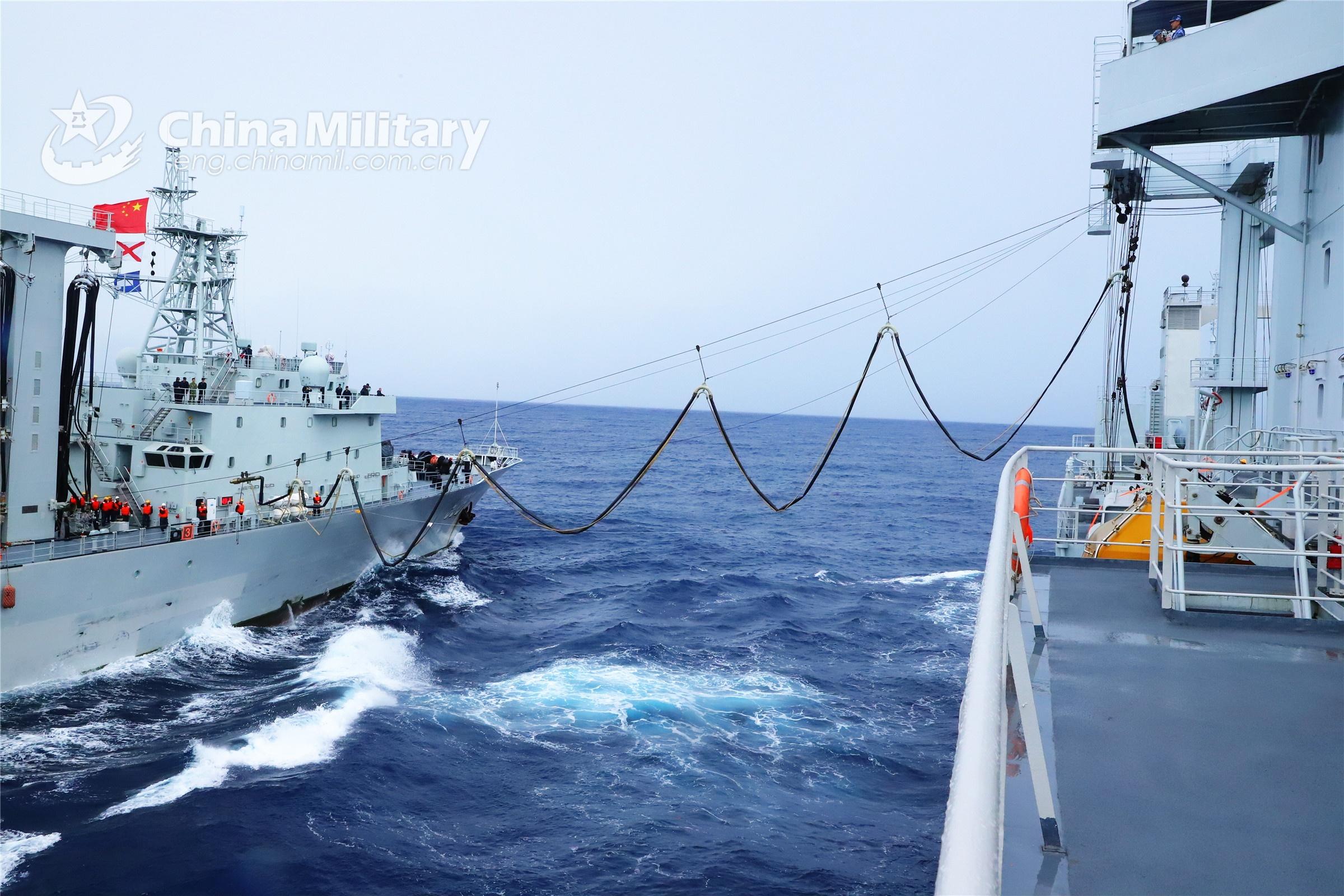 Vessels attached to a naval combat support flotilla under the PLA Southern Theater Command conduct underway replenishment-at-sea during a maritime real combat training exercise in late September 2022. (eng.chinamil.com.cn/Photo by Li Junlin)