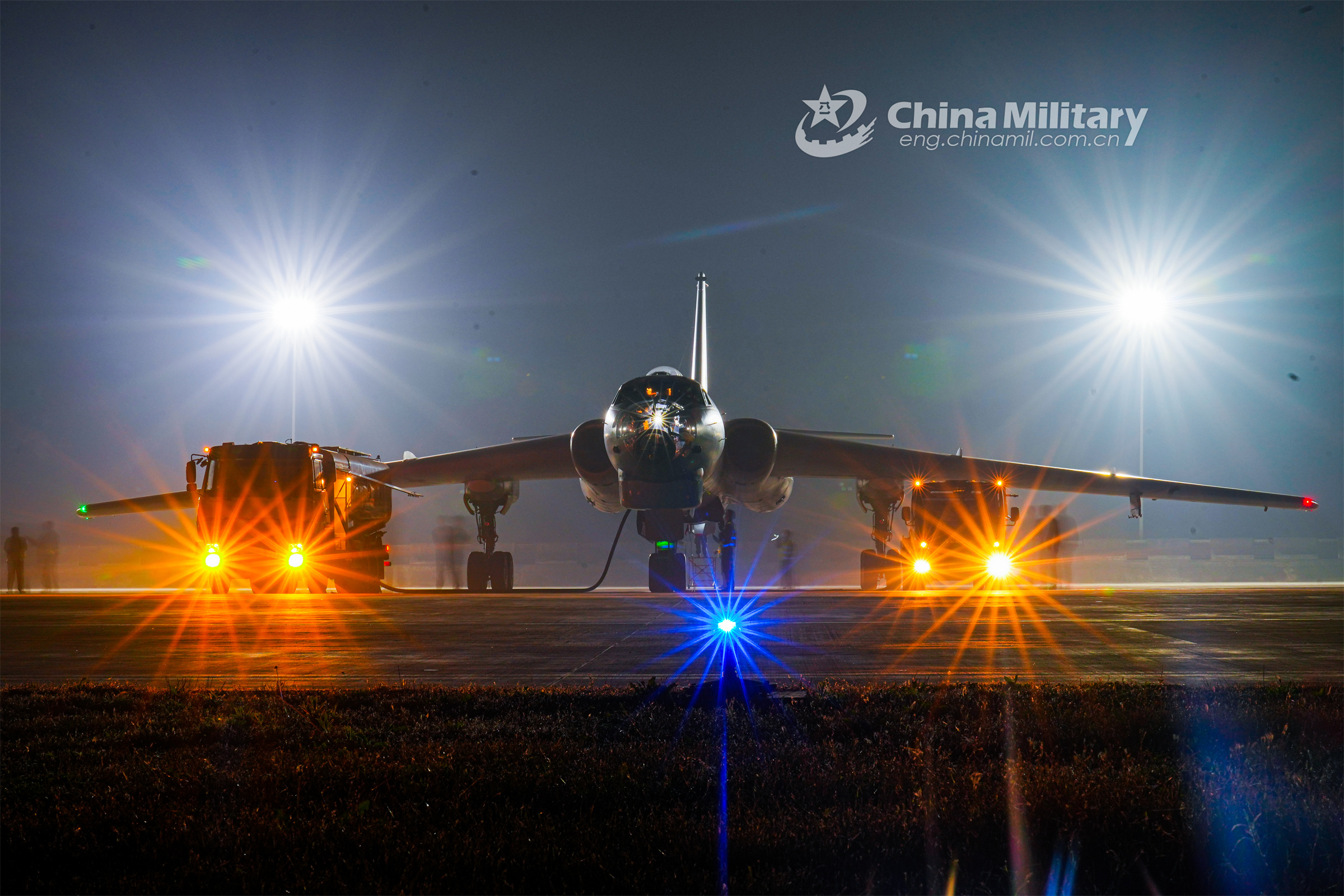 Airmen assigned to an aviation regiment of the air force under the PLA Central Theater Command replenish liquid oxygen for the aircraft prior to a night flight training exercise on November 2, 2022. (eng.chinamil.com.cn/Photo by He Shilong)