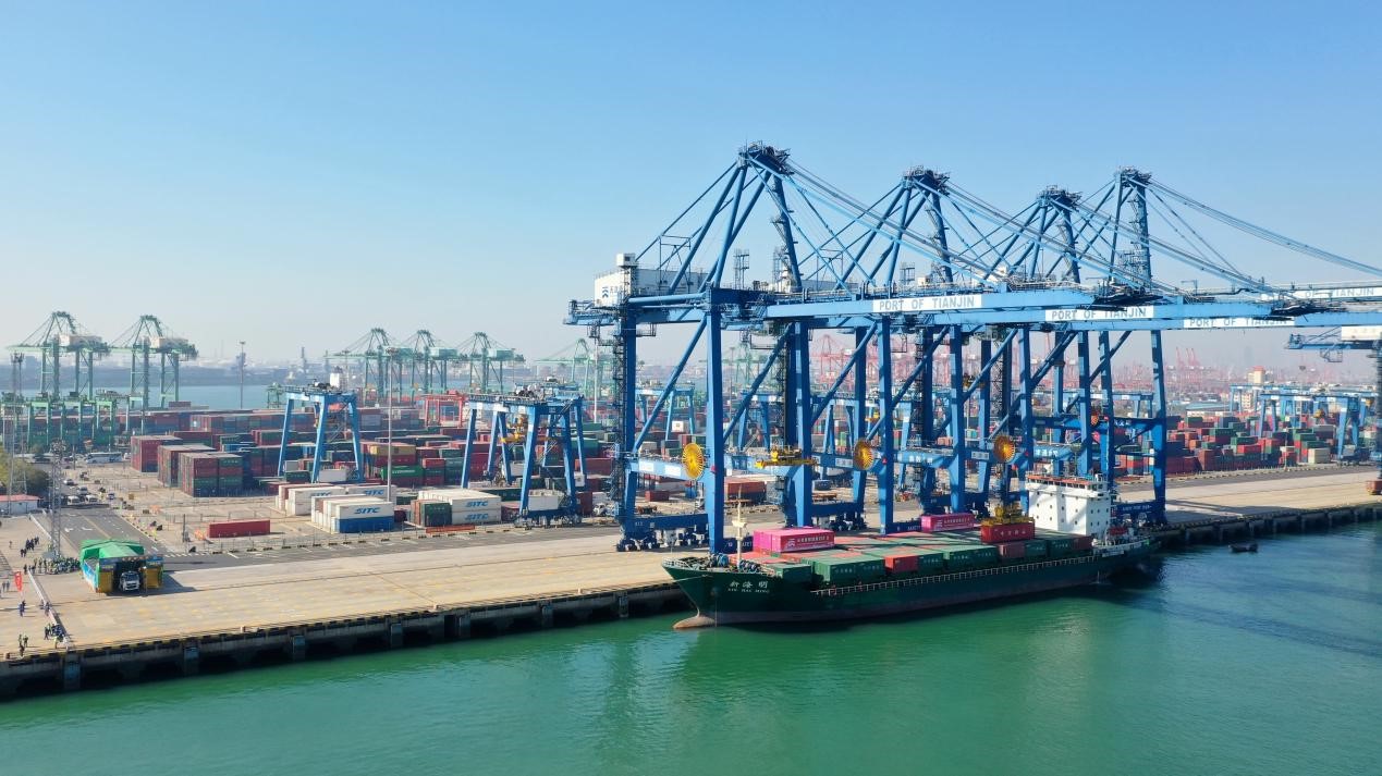 On Oct. 13, the Section C of the Beijiang Harbor District, Tianjin Port in north China's Tianjin municipality saw its container throughput exceed 1 million twenty-foot equivalent units (TEUs). It only took the section 33 months to achieve the milestone from its commencement, the shortest in the world. As the first intelligent carbon-zero terminal in the world, it sets a new example for global ports in intelligent upgrading.