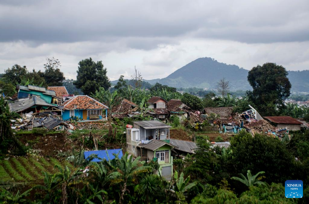 This photo taken on Nov. 27, 2022 shows houses damaged in a 5.6-magnitude earthquake in Sukamulya village of Cianjur, West Java, Indonesia. (Photo by Septianjar Muharam/Xinhua)