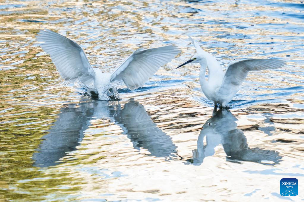 Egrets are seen at a wetland in Qixingguan District of Bijie, southwest China's Guizhou Province, Nov. 27, 2022. (Photo by Luo Dafu/Xinhua)