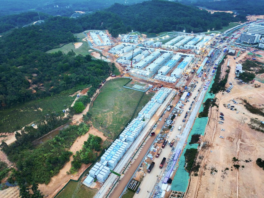 This aerial photo taken on Nov. 21, 2022 shows a makeshift hospital in Huangpu District of Guangzhou, south China's Guangdong Province. (Xinhua)