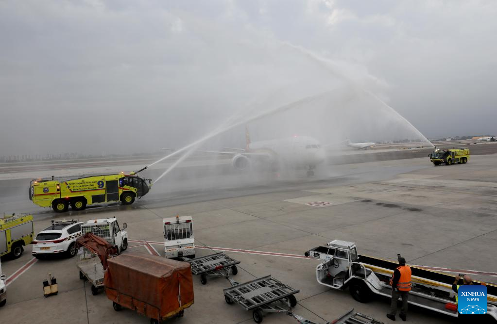 JERUSALEM, Nov. 29 (Xinhua) -- A commercial flight operated by China's Hainan Airlines landed at the Ben Gurion International Airport in Israel on Tuesday morning, marking the resumption of direct passenger flight between the Chinese mainland and Israel since the outbreak of the COVID-19 pandemic.