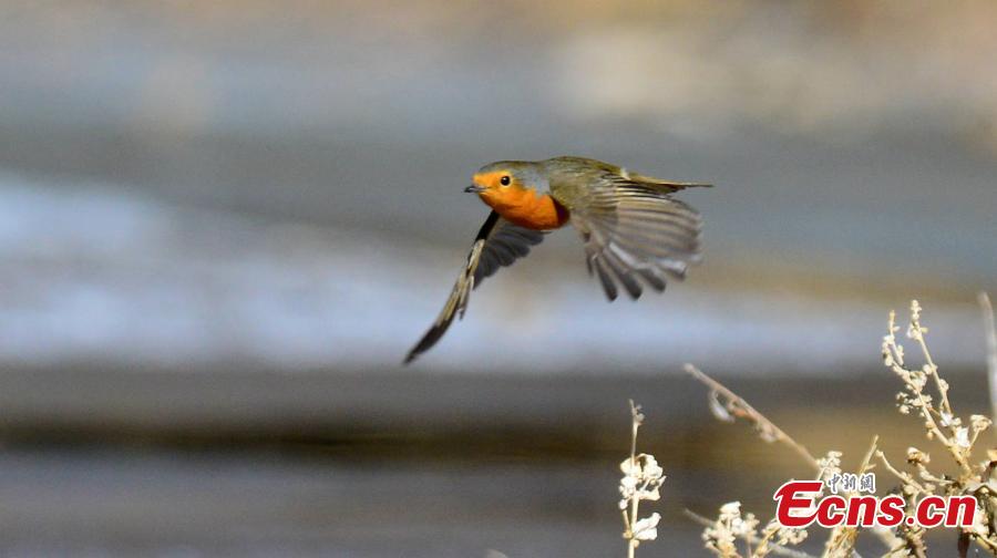 A rare robin bird is spotted flying over Mangya city, northwest China's Qinghai Province. (Photo: China News Service/Wang Xiaojiong)