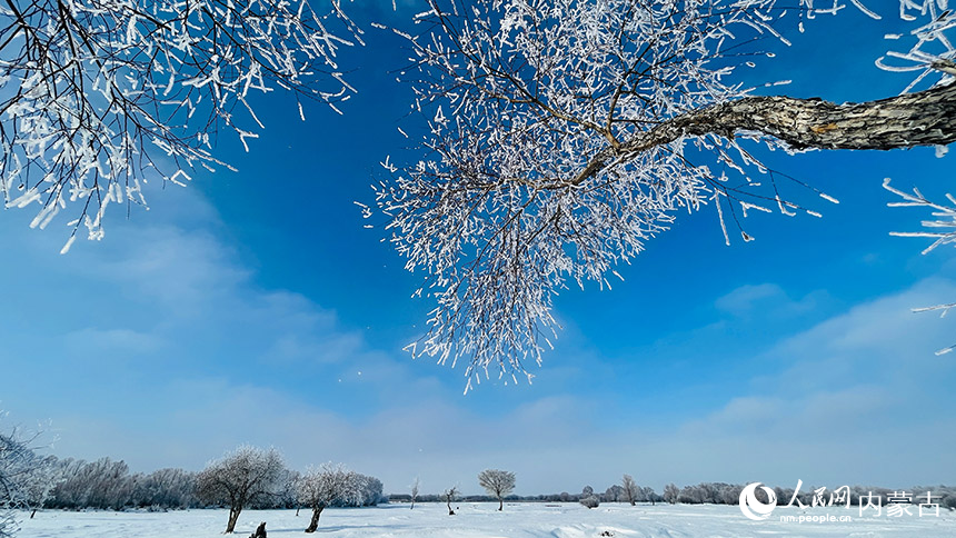 Crystal-clear icicles hang on trees along the banks of Erguna River, covering the landscape in a palette of silver and white, creating a spectacular winter scene in Erguna, north China's Inner Mongolia Autonomous Region. (Photo/Li Qiang)