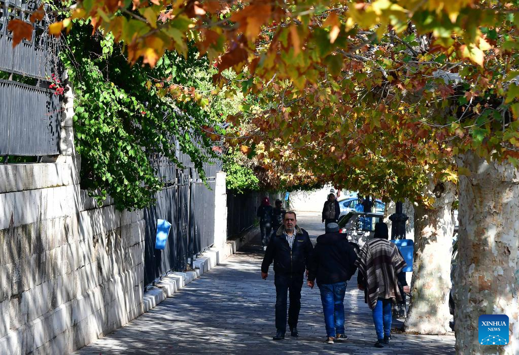 People walk down the street in Damascus, capital of Syria, Nov. 30, 2022. (Photo by Ammar Safarjalani/Xinhua)
