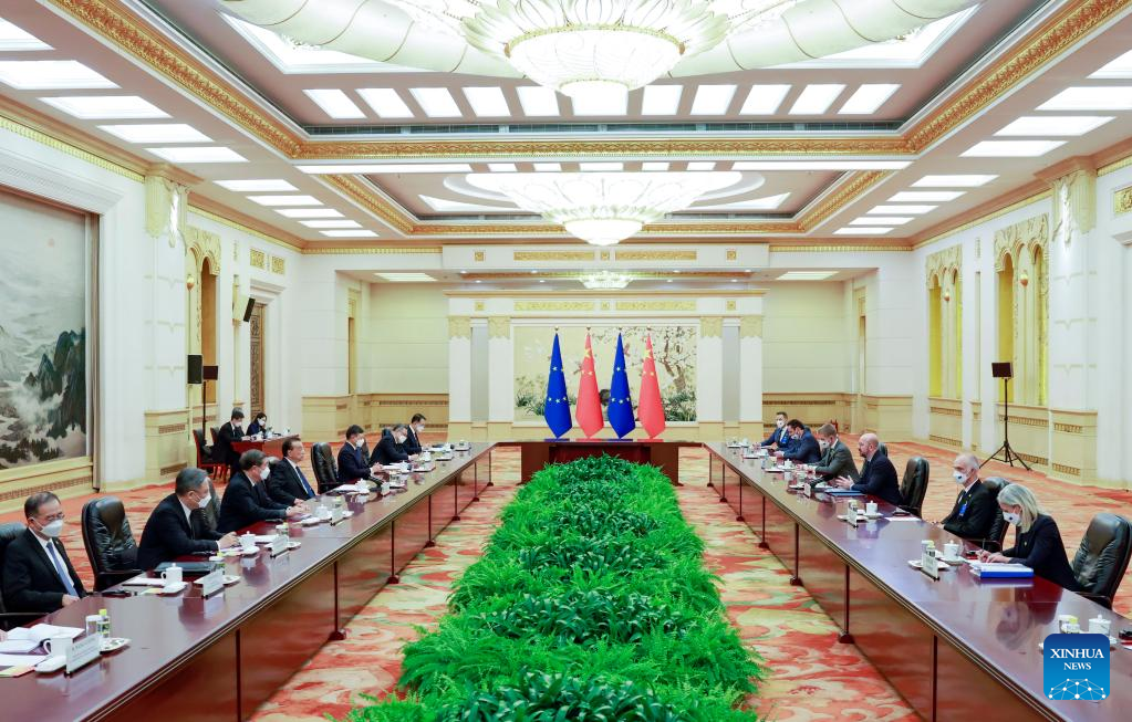 Chinese Premier Li Keqiang meets with President of the European Council Charles Michel at the Great Hall of the People in Beijing, capital of China, Dec. 1, 2022. (Xinhua/Ding Lin)
