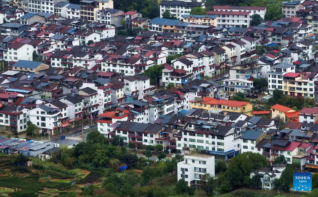 This aerial photo taken on Dec. 1, 2022 shows the view of Xingcun Township in Wuyishan, southeast China's Fujian Province. (Xinhua/Wei Peiquan)