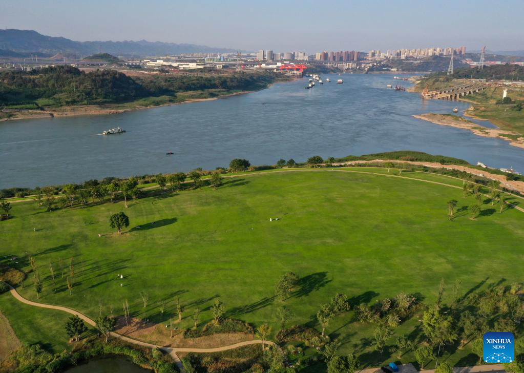 This aerial photo taken on Nov. 2, 2022 shows a view of Guangyang Isle in southwest China's Chongqing. (Xinhua/Wang Quanchao)
