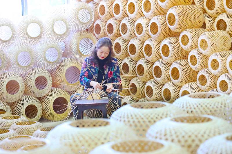 An employee makes a lantern with bamboo strips at a company in Xinqiao neighborhood, Pingjin township, southwest China’s Chongqing Municipality, Oct. 11, 2022. (vip.peole.com.cn/Liu Hui)