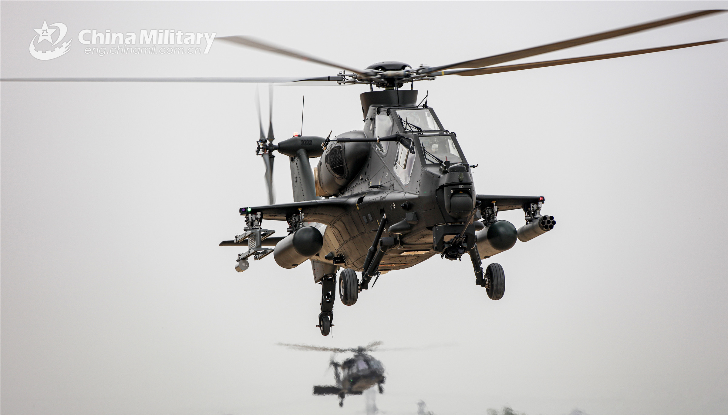 Multiple types of helicopters attached to an aviation brigade of the army lift off in turn for a flight training exercise on November 22, 2022. (eng.chinamil.com.cn/Photo by Li Chunguo)