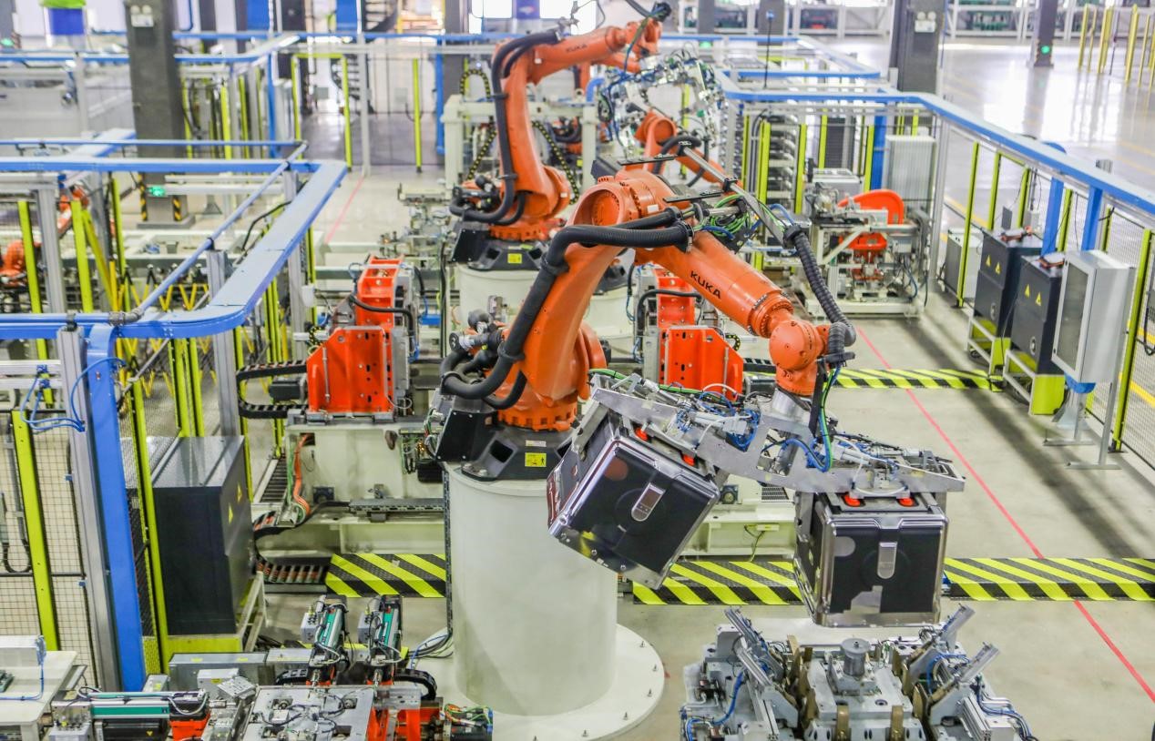 Robotic arms manufacture products in an intelligent factory in Hefei, east China's Anhui province, Nov. 12, 2021. (People's Daily Online/Xu Qingyong)