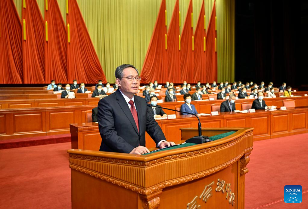 Li Qiang, a member of the Standing Committee of the Political Bureau of the Communist Party of China (CPC) Central Committee, attends the opening of the 17th national congress of the Chinese Peasants and Workers Democratic Party (CPWDP) and delivers a congratulatory message on behalf of the CPC Central Committee, in Beijing, capital of China, Dec. 7, 2022. (Xinhua/Yin Bogu)
