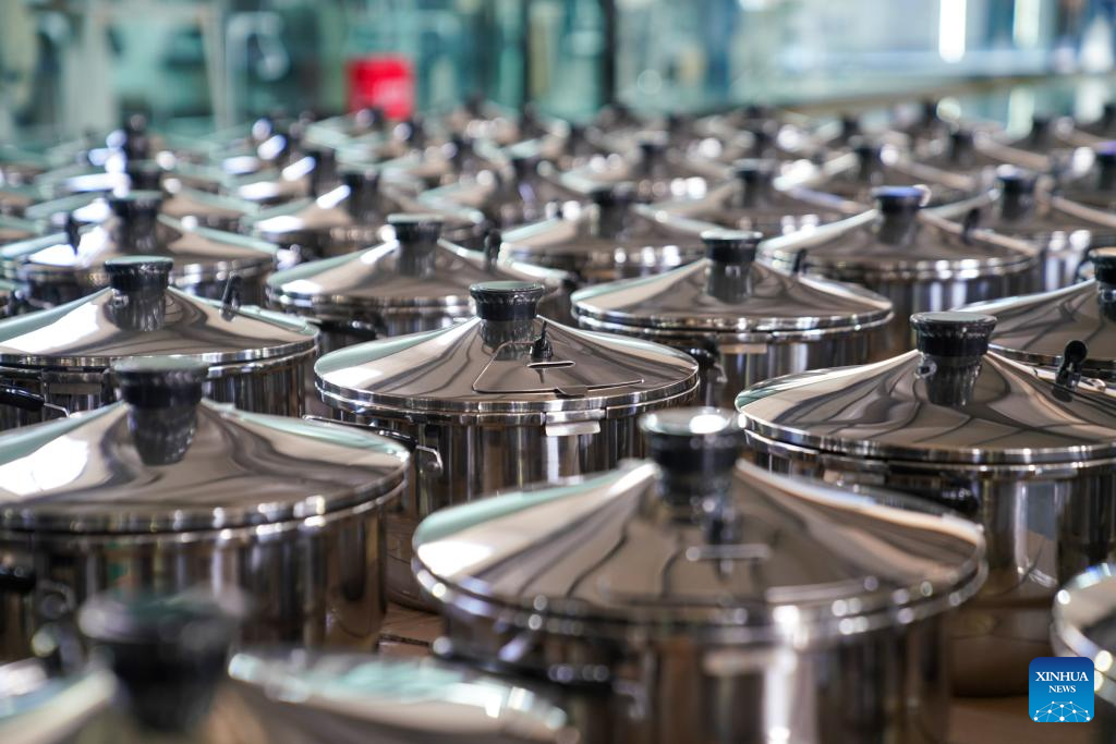 This photo taken on Nov. 27, 2022 shows pressure cookers in a factory in Lhasa, southwest China's Tibet Autonomous Region. (Xinhua/Huang Yaoman)