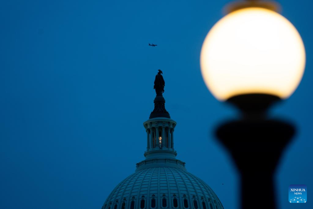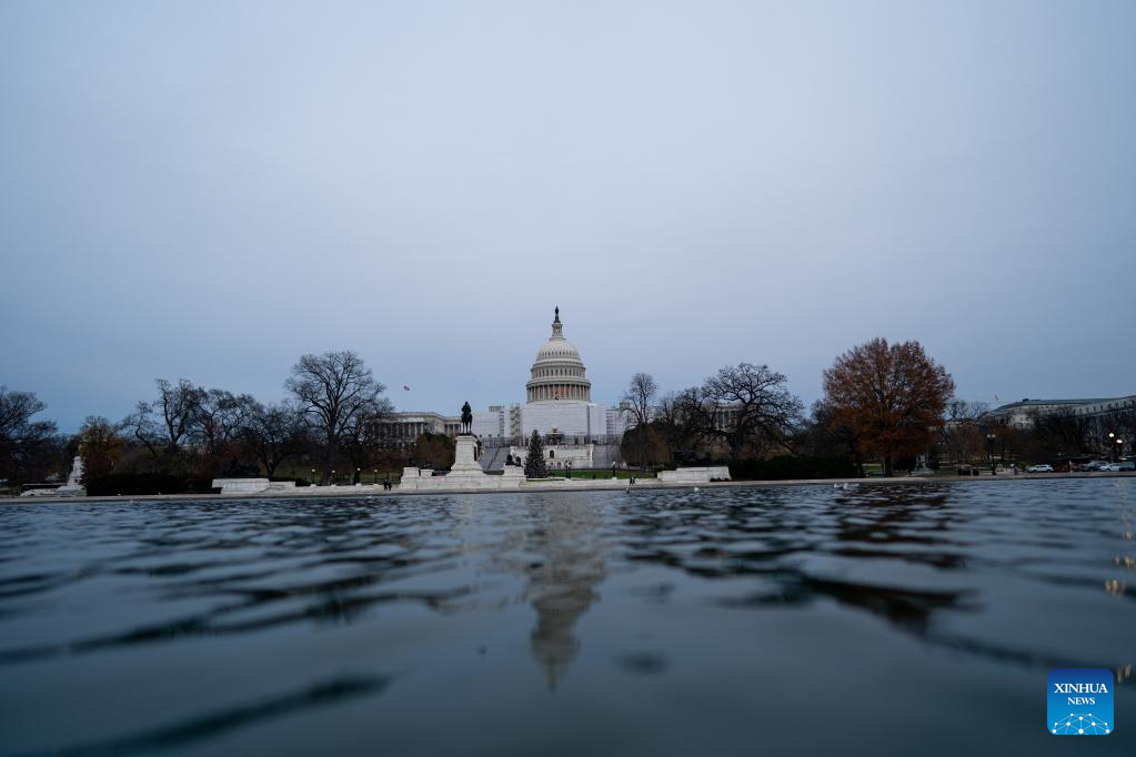 Photo taken on Dec. 8, 2022 shows the U.S. Capitol building in Washington, D.C., the United States. The U.S. House of Representatives passed the annual defense authorization bill on Thursday. The National Defense Authorization Act (NDAA) -- worth 847 billion U.S. dollars -- now goes to the Senate for consideration. (Xinhua/Liu Jie)