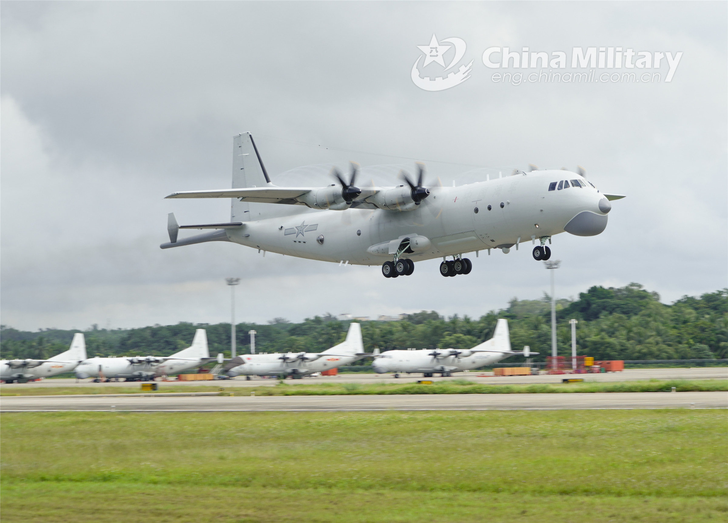 An anti-submarine patrol aircraft attached to an aviation regiment of the naval force under the PLA Southern Theater Command soars into the sky for flight training, which involves multiple subjects including maritime security patrol, fast takeoff and landing and anti-submarine flight, on November 27, 2022. (eng.chinamil.com.cn/Photo by Qin Qianjiang)