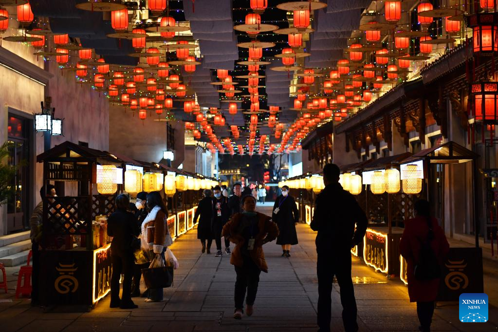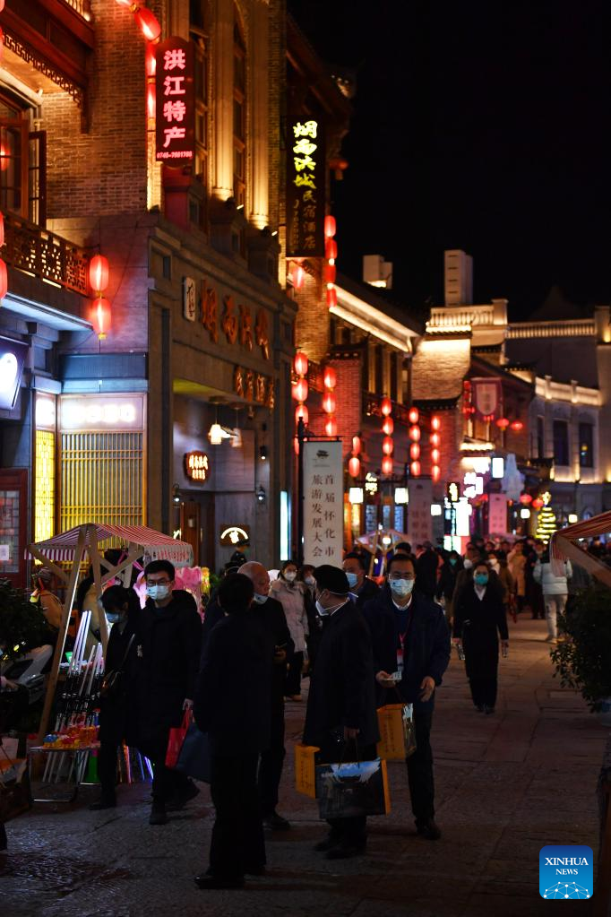 People visit the Hongjiang ancient town in Huaihua, central China's Hunan Province, Dec. 9, 2022. Hongjiang ancient town has launched a variety of activities at nighttime to boost night economy. (Xinhua/Chen Zhenhai)