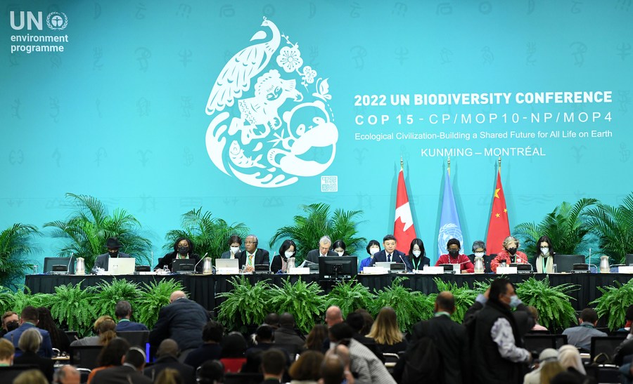 This photo taken on Dec. 7, 2022 shows the opening ceremony of the second phase of the 15th meeting of the Conference of the Parties to the UN Convention on Biological Diversity (COP15) in Montreal, Canada. (Xinhua/Lian Yi)