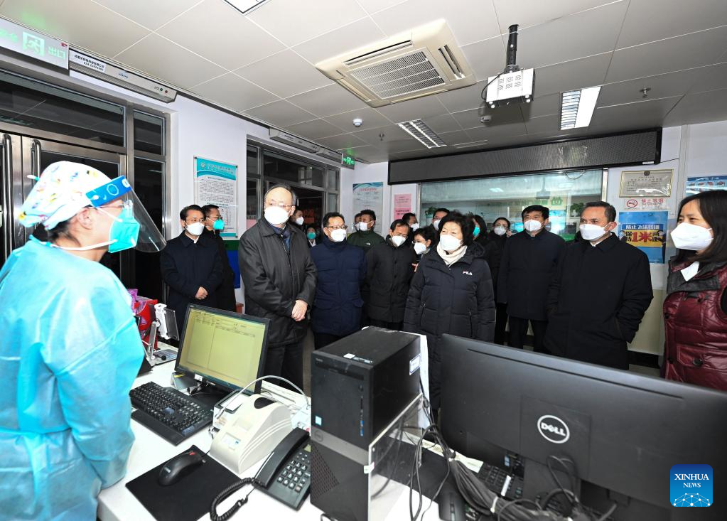 Chinese Vice Premier Sun Chunlan inspects the Jianguomen community health service center in Beijing, capital of China, Dec. 13, 2022.