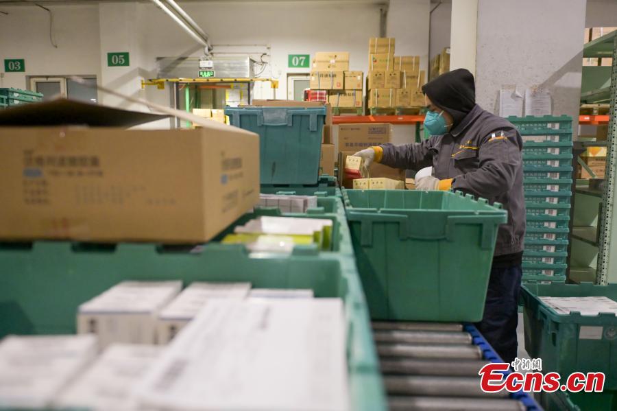 A staff members packs medications on a production line at a pharmaceutical company in Beijing, Dec. 13, 2022. (Photo: China News Service/Zhao Wenyu)
