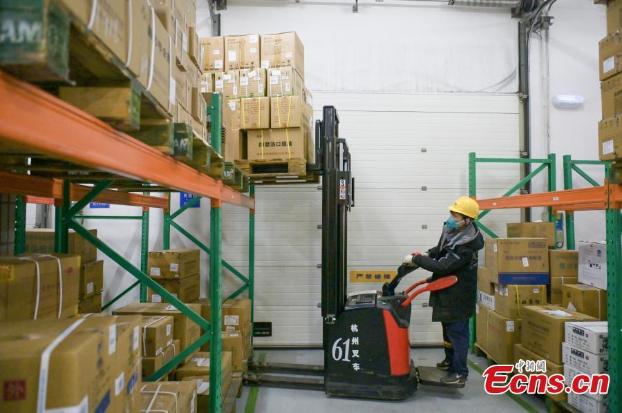 A staff members packs medications on a production line at a pharmaceutical company in Beijing, Dec. 13, 2022. (Photo: China News Service/Zhao Wenyu)