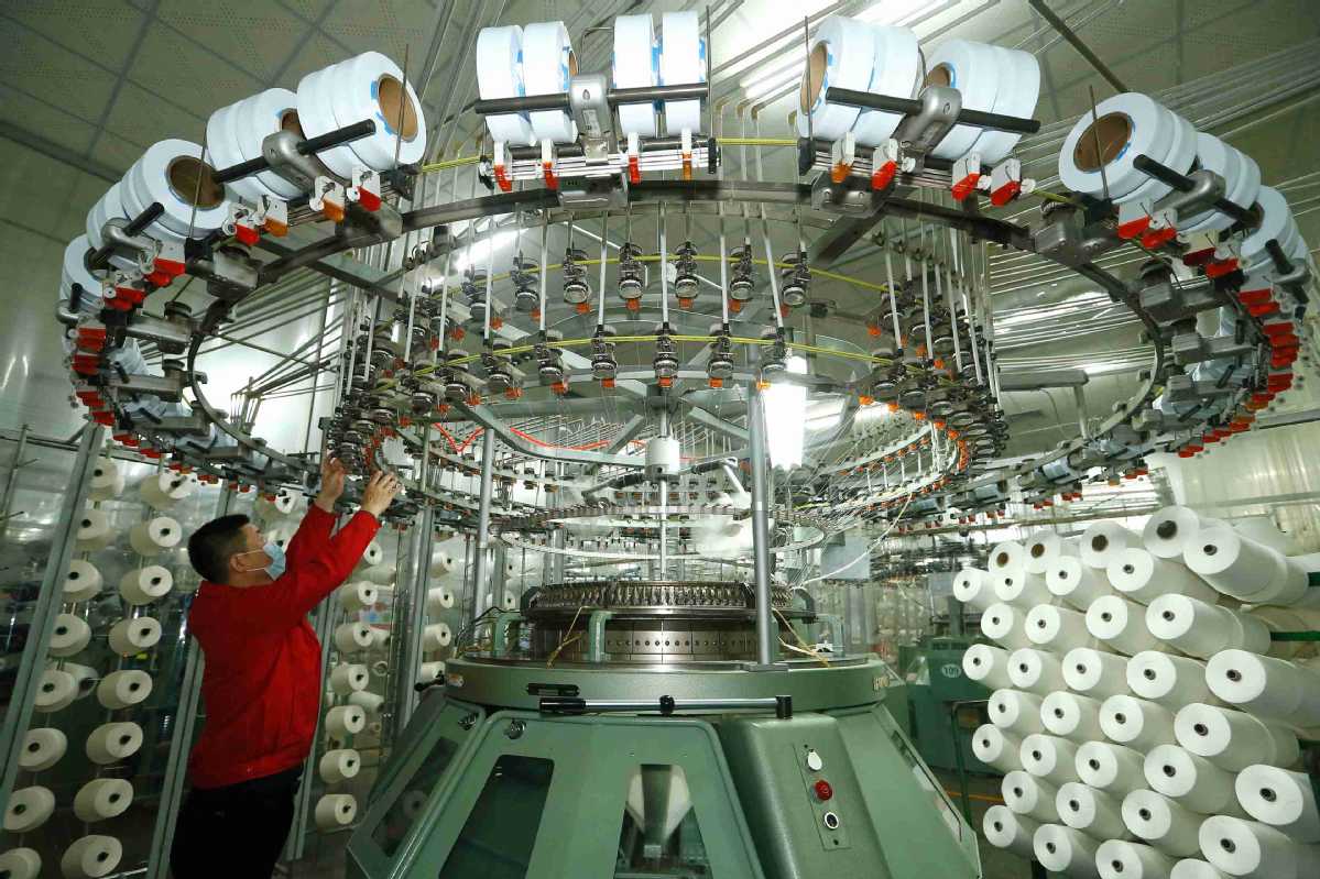 An employee works on the production line of a textile company in Qingdao, Shandong province. [Photo/Xinhua]