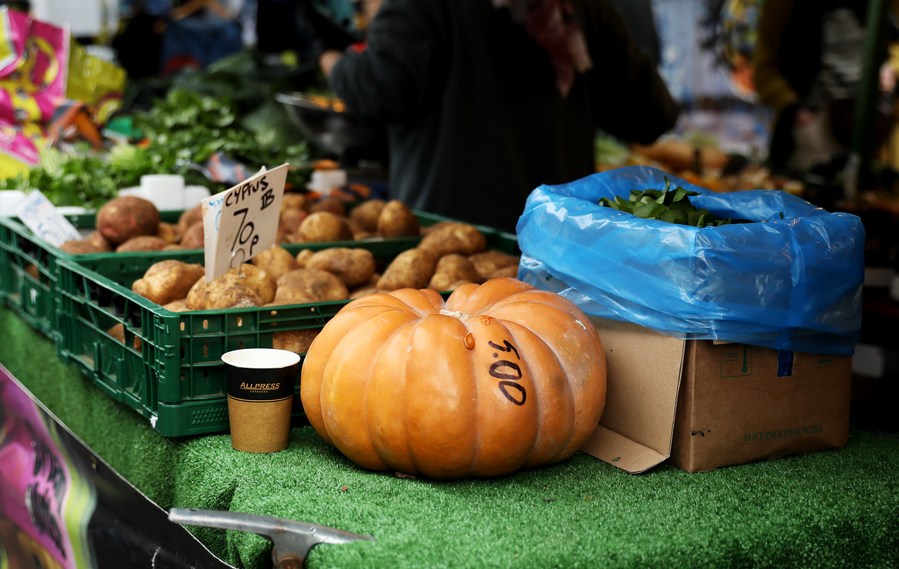 Vegetables are sold at Portobello Market in London, Britain, Oct. 22, 2022. (Xinhua/Li Ying)