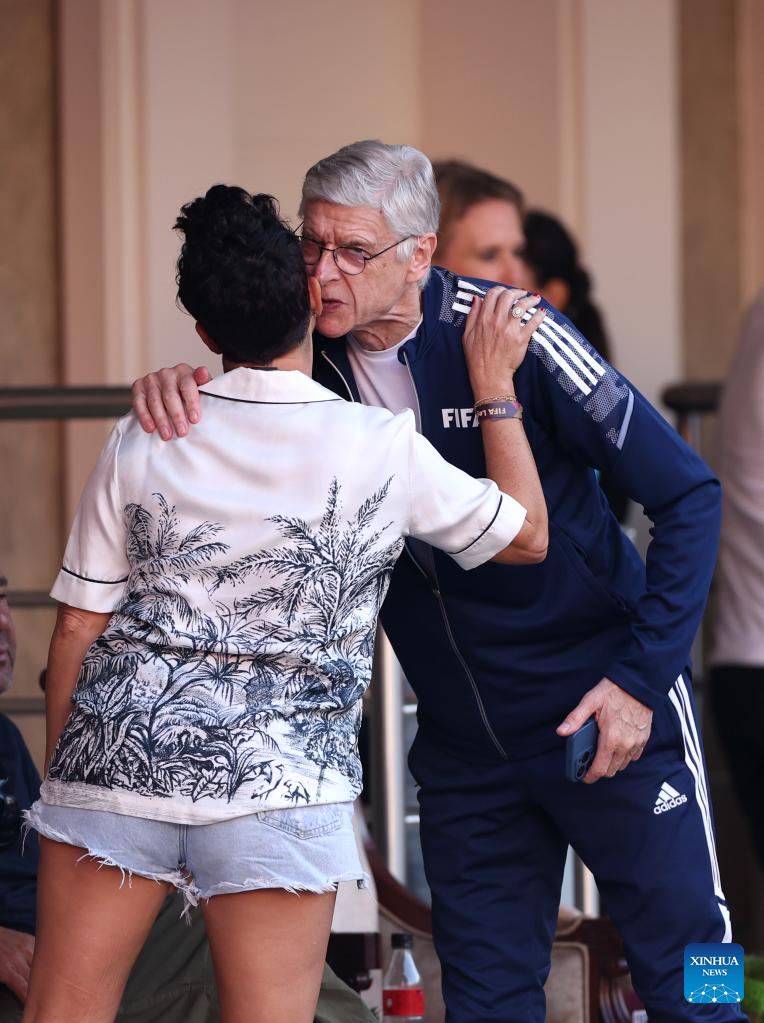 FIFA's Chief of Global Football Development Arsene Wenger (R) is seen during the FIFA Legends Cup at the Khalifa International Tennis &Squash Complex in Doha, Qatar, Dec. 15, 2022. (Xinhua/Jia Haocheng)