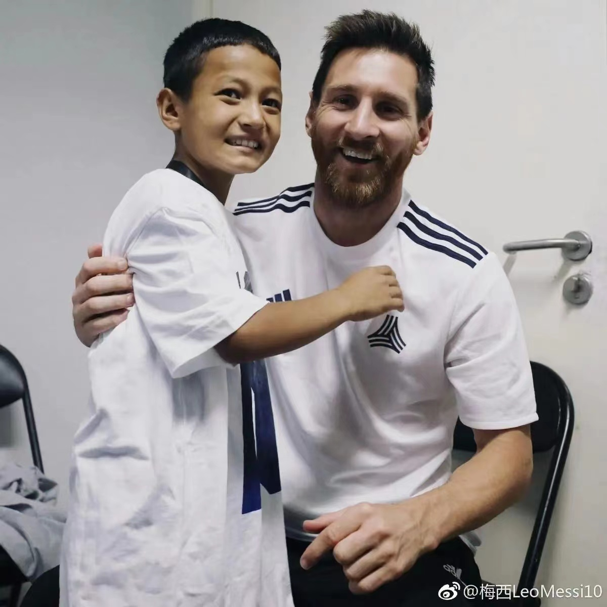 With the help of football media, Abduhalik Hemdulla met his idol Messi in 2017 and received an autographed football, a jersey and a warm hug from the football star.
