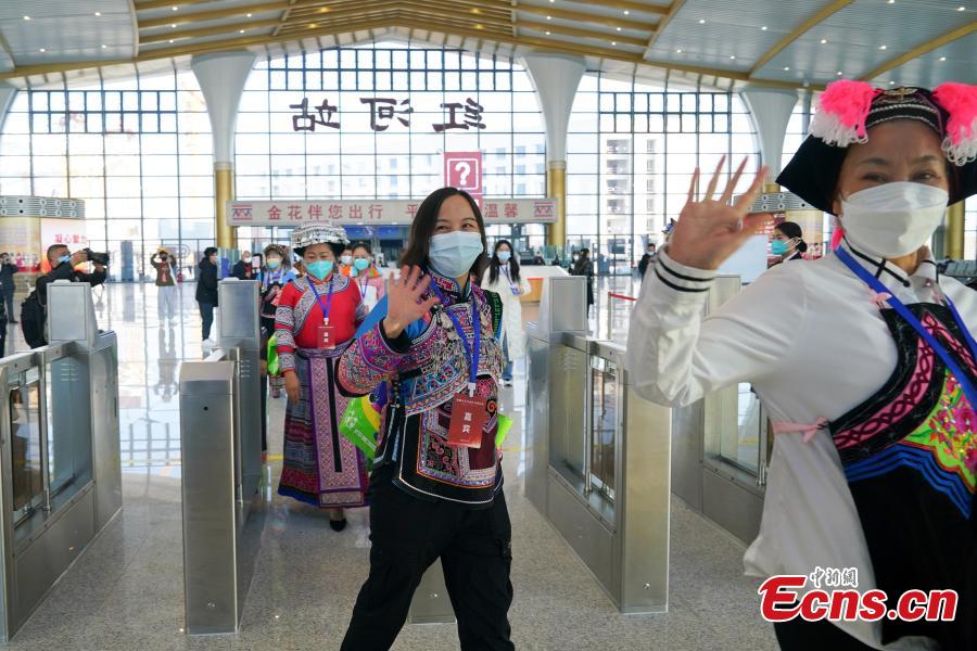 Passengers pass the check-in gates at Honghe Railway Station of the Mile-Mengzi high-speed railway in southwest China's Yunnan Province, Dec. 16, 2022. (Photo: China News Service/Liu Ranyang)