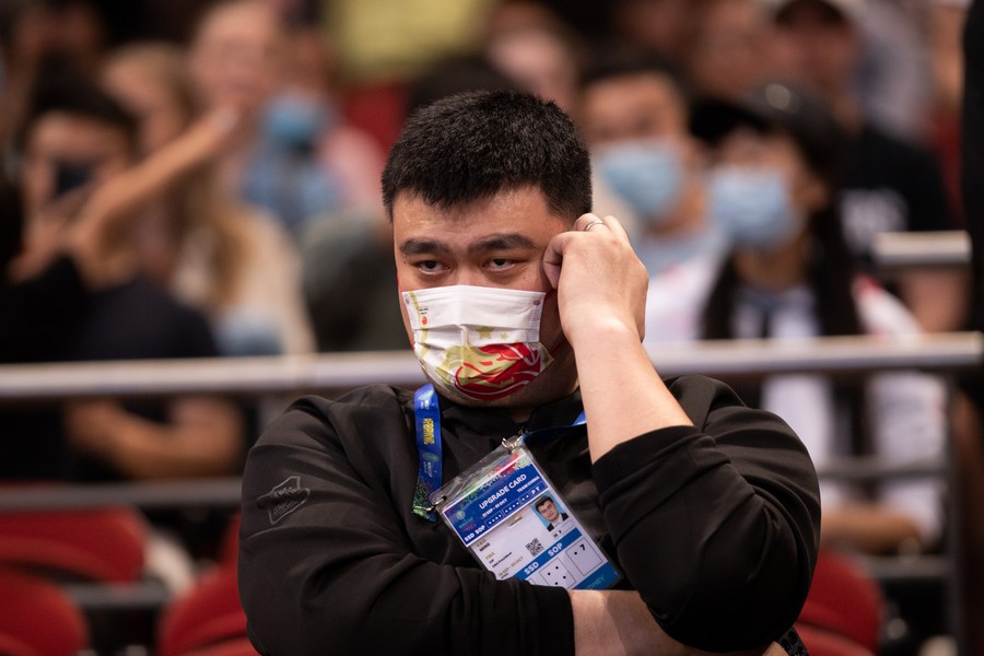 Chinese Basketball Association president Yao Ming is seen during a Group A match between China and the United States at the FIBA Women's Basketball World Cup 2022 in Sydney, Australia, Sept. 24, 2022. (Photo by Hu Jingchen/Xinhua)