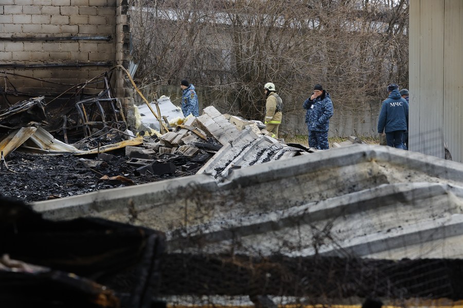 People inspect the aftermath of recent shelling of the city market in Donetsk, Dec. 12, 2022. (Photo by Victor/Xinhua)