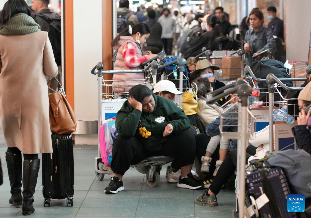 Passengers wait in a check-in line at Vancouver International Airport in Richmond, British Columbia, Canada, on Dec. 20, 2022. (Photo by Liang Sen/Xinhua)