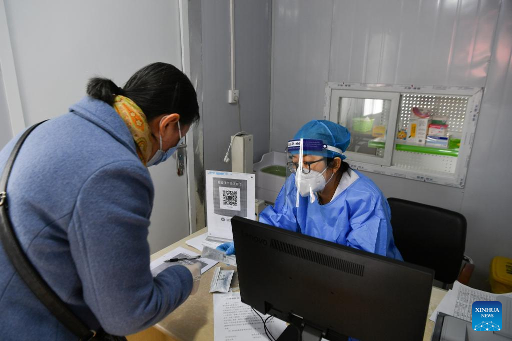 A citizen receives COVID-19 antigen test at a fever clinic in Lianhu District of Xi'an, northwest China's Shaanxi Province, Dec. 19, 2022. (Photo by Zou Jingyi/Xinhua)