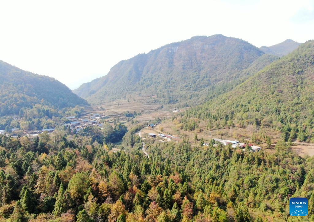 This photo taken on Nov. 8, 2022 shows a view of the forest where Cheng Delin conducts his afforestation work in Zhoujia'ao Village, Chanxi Township, Yinjiang Tujia and Miao Autonomous County, southwest China's Guizhou Province.(Xinhua)