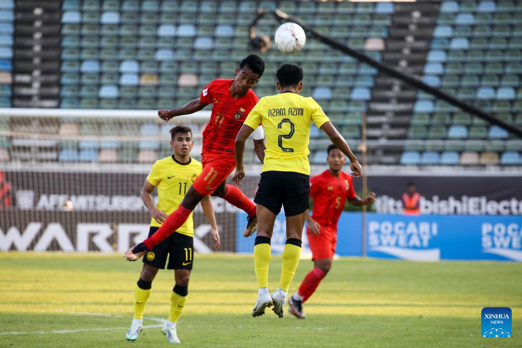 YANGON, Dec. 21 (Xinhua) -- Myanmar's men's national football team staged its first international match on home turf in around three years in a 1-0 loss to Malaysia on Wednesday for 2022 ASEAN Football Federation (AFF) Championship.