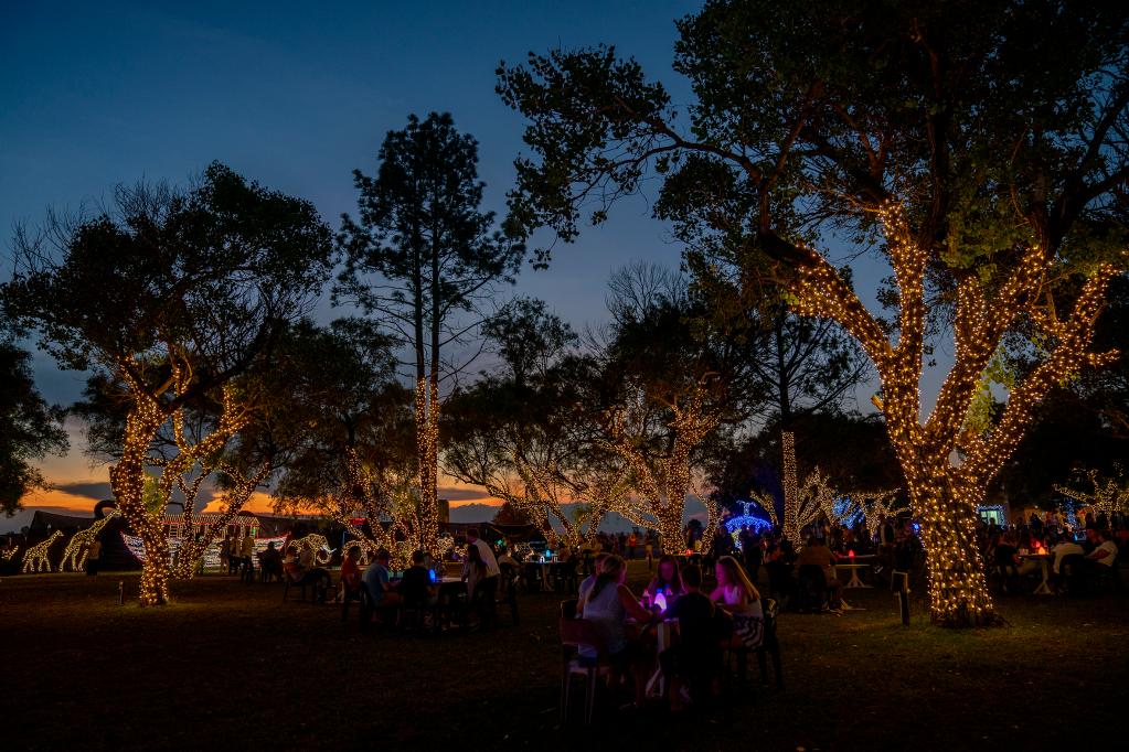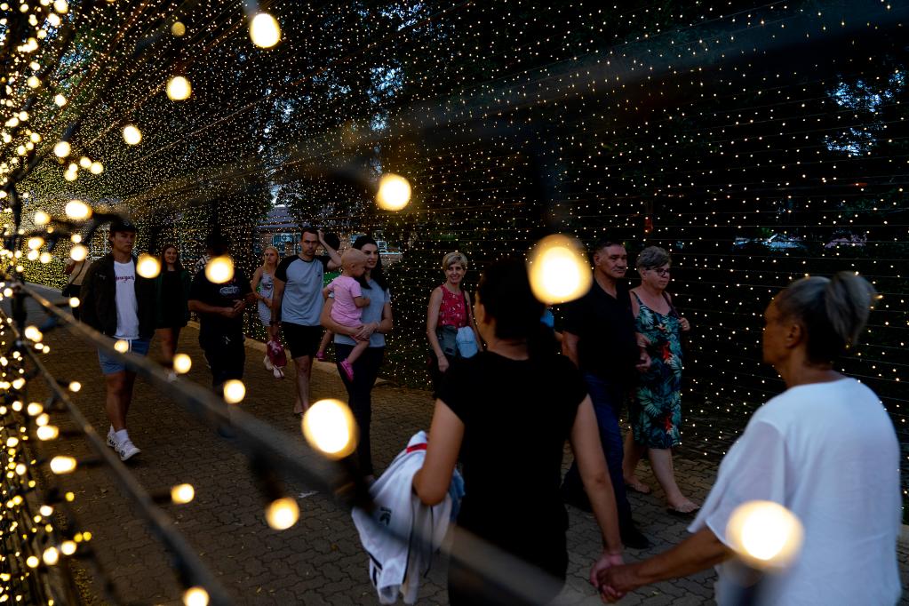 People visit a light fair in Potchefstroom, South Africa, Dec. 22, 2022. (Photo by Shiraaz Mohamed/Xinhua)