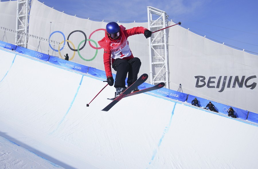 Chinese athlete Gu Ailing competes during the freestyle skiing women's freeski halfpipe final of Beijing 2022 Winter Olympics at Genting Snow Park in Zhangjiakou, north China's Hebei Province, Feb. 18, 2022. (Xinhua/Yang Shiyao)