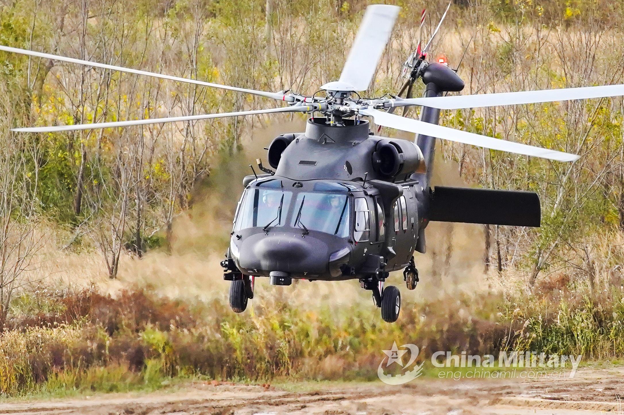 Helicopters attached to an army aviation brigade under the PLA 71st Group Army conduct ultra-low altitude defense penetration operations in flight training on November 13, 2022. (eng.chinamil.com.cn/Photo by Xiang Xu)