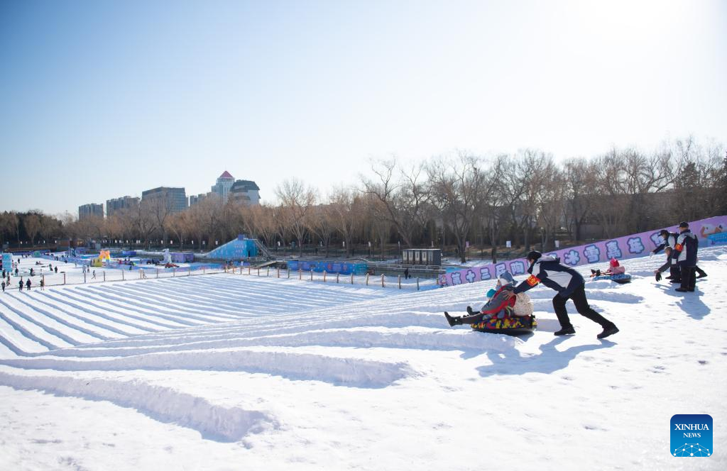 Visitors play on snow slides at an ice and snow carnival at Taoranting park in Beijing, capital of China, Dec. 28, 2022. (Xinhua/Chen Zhonghao)