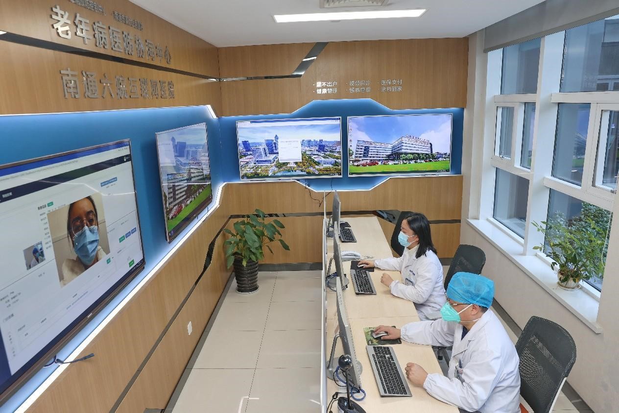 Doctors of the Sixth People's Hospital of Nantong, east China's Jiangsu province, which set up the first internet hospital in the city, offer online medical services, Dec. 14, 2022. (People's Daily Online/Xu Congjun)