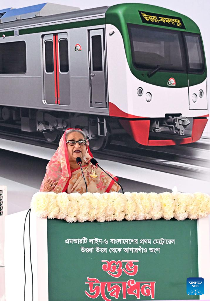 Prime Minister Sheikh Hasina inaugurated the Mass Rapid Transit (MRT Line)-6 of the metro rail from the capital Dhaka's Uttara to Agargaon area at a function in the city.
