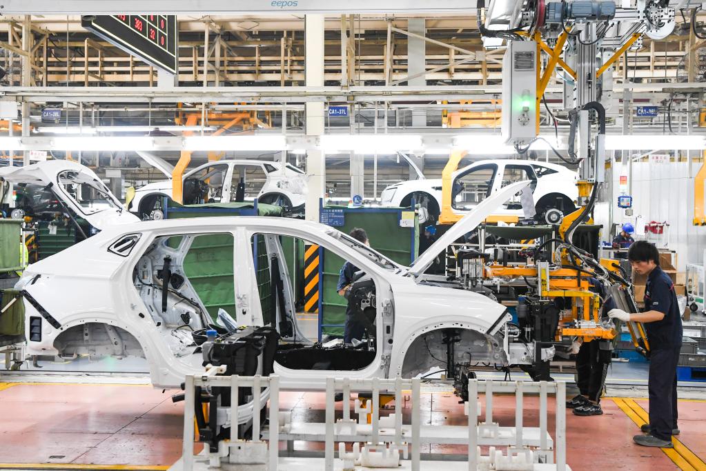 Workers assemble vehicles in a smart factory of the Changan Auto in Chongqing, southwest China, June 16, 2022. (Xinhua/Wang Quanchao)