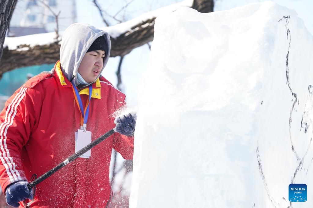 A nationwide ice sculpture competition for college students kicked off in Zhaolin Park in Harbin, northeast China's Heilongjiang Province on Thursday.